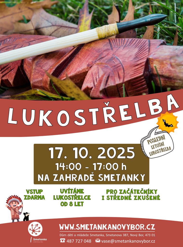 Lukostřelba na zahradě Smetanky. Vhodné pro děti i dospělé. Volný vstup v průběhu celého odpoledne.